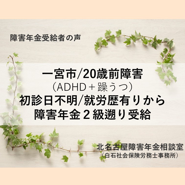 今回は、一宮市で発達障害(ADHD)と躁うつ(双極性障害)を患う方が障害年金2級を受給した実際の事例についてご紹介します😊